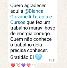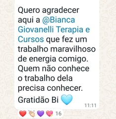 Bianca Giovanelli é uma Terapeuta Energética renomada, com anos de experiência e milhares de atendimentos realizados tanto online quanto presencialmente. Como Mestre Reiki, Especialista em Radiestesia e Consteladora Familiar, Bianca dedica sua carreira a ajudar as pessoas a restaurar seu equilíbrio energético e emocional destravando a prosperidade.